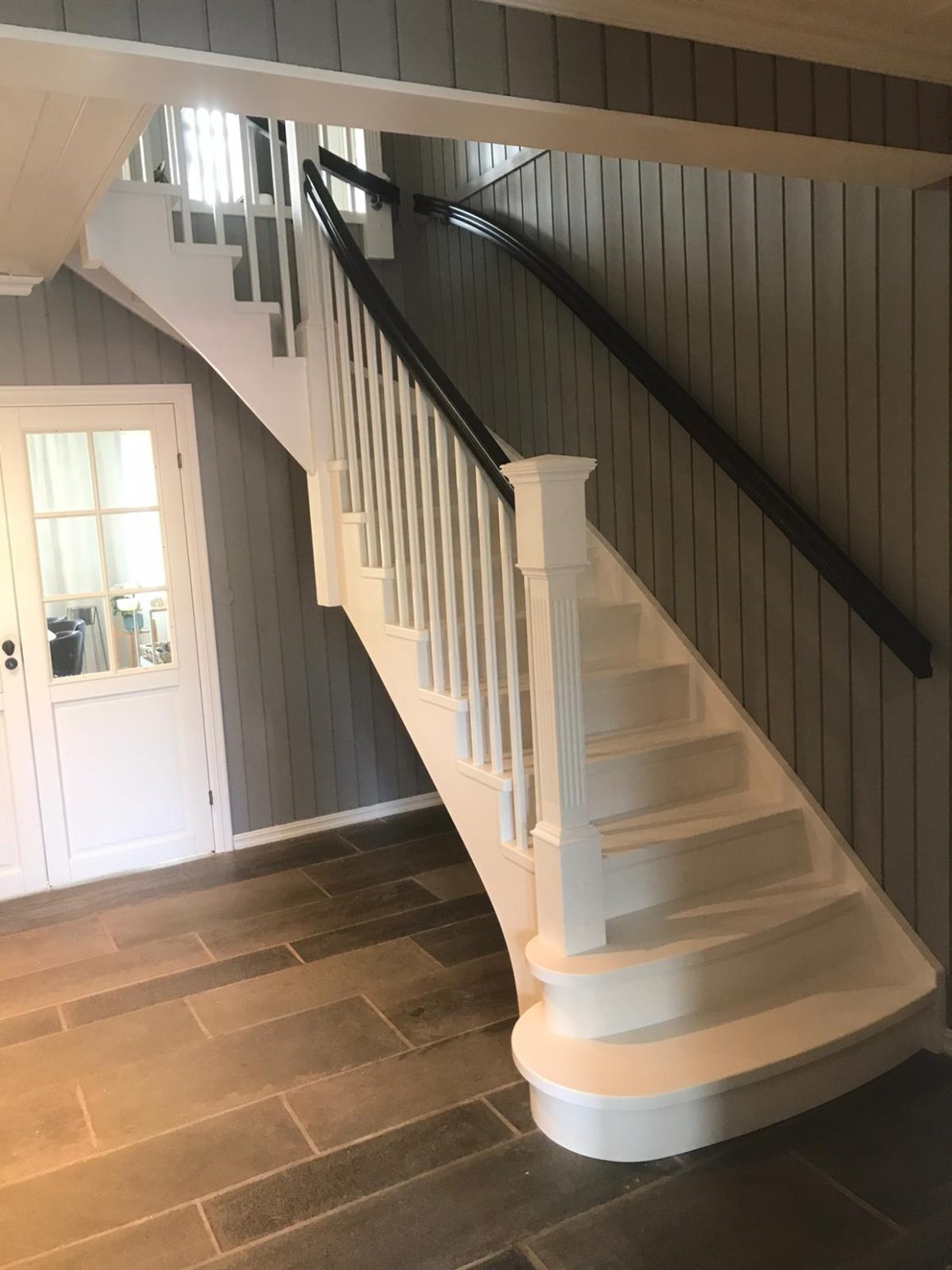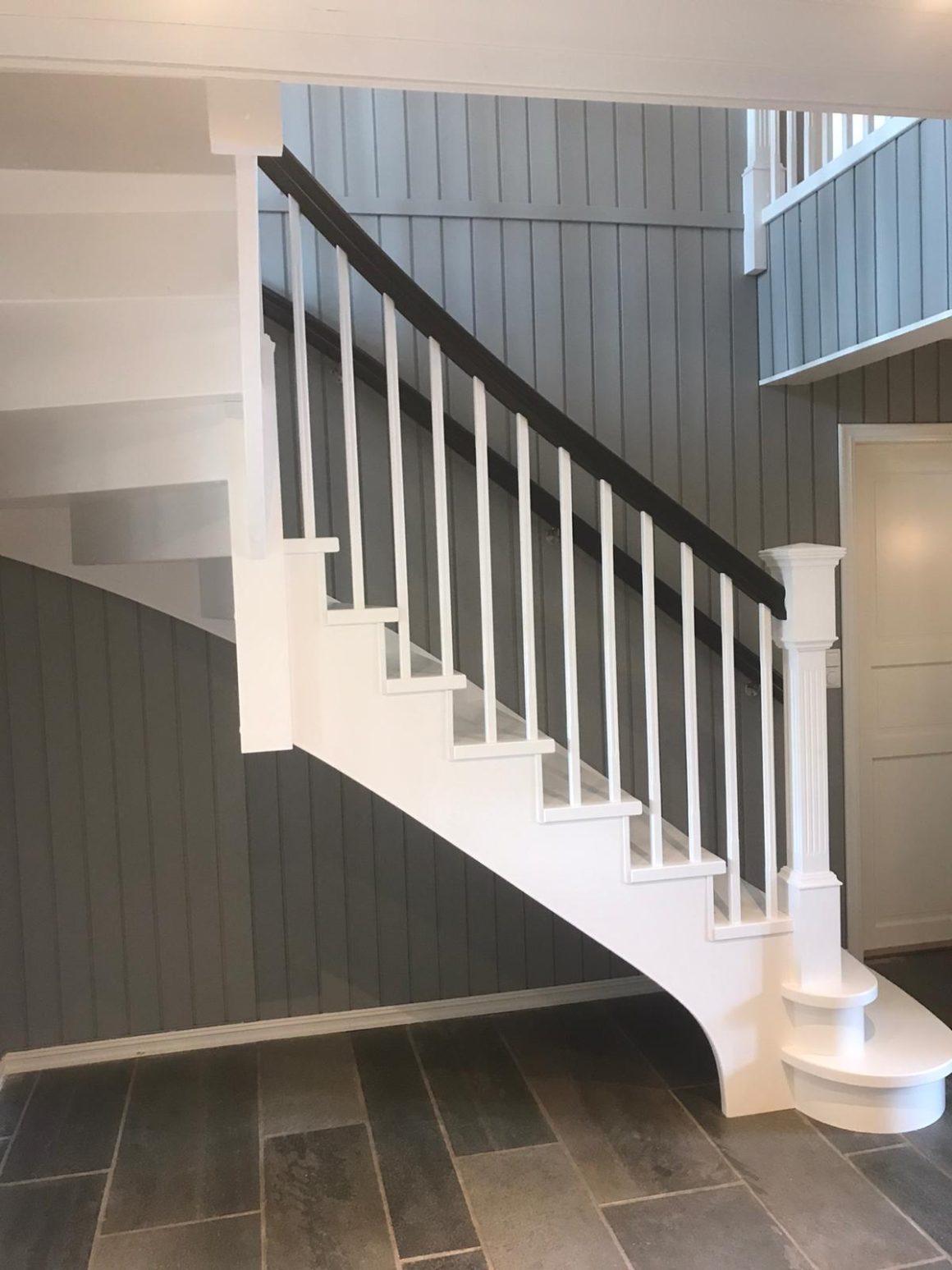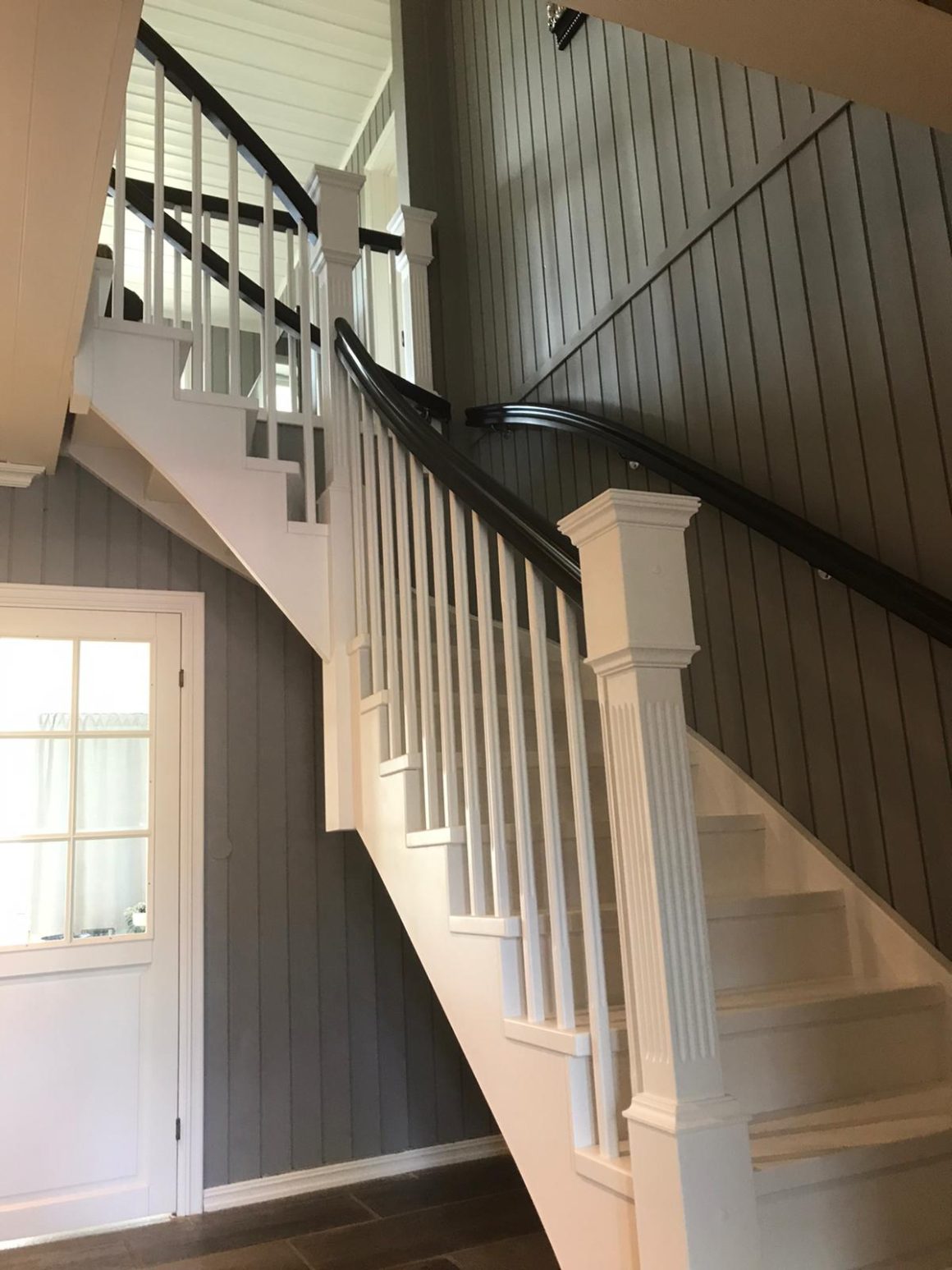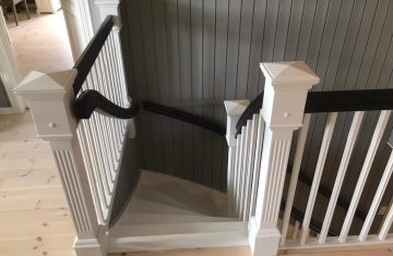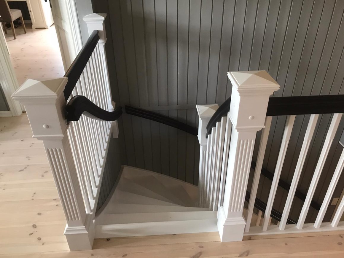 Klassiske trapperTrapp Kragerø Form: Y Trappetype: lukket Vangetype: C-1, hvitmalt tre Material: beiset og lakkert helstav ask Rekkverket: buet handlist, hvitmalt trerekkverk og stolper Trapp Drammen Form: 1/4 (90˚) sving Trappetype: lukket Vangetype: С-2, hvitmalt tre Material: beiset helstav ask Rekkverket: buet håndlist og profilerte spiler, klassiske stolper Trapp Hammerfest Form: 1/4 (90˚) sving Trappetype: lukket Vangetype: С-2, hvitmalt tre Material: beiset helstav ask Rekkverket: hvitmalt buet håndlist, hvitmalte spiler og stolper